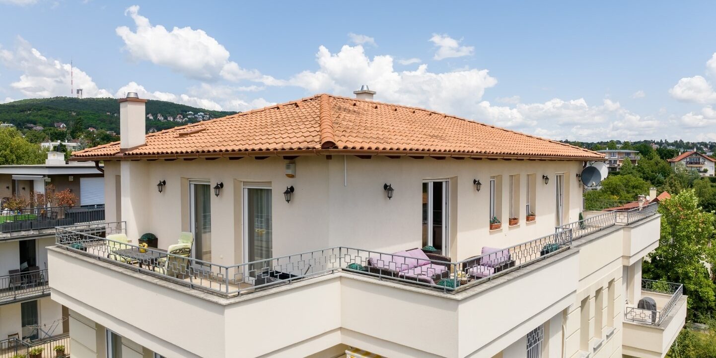 Penthouse apartment with panoramic view, 57 m2 terrace, 2 parking spaces, 166 m2 private garden and private storage for sale, in Madárhegy, Buda, district XI.