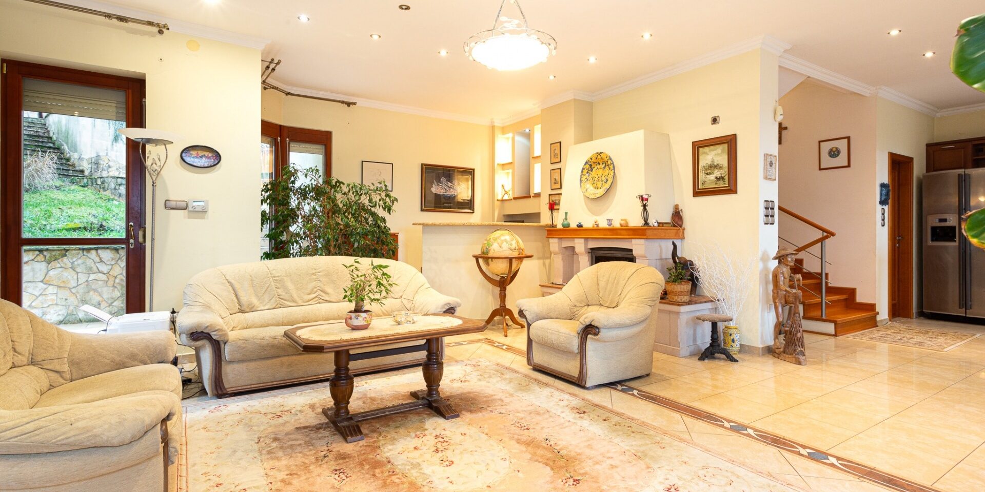 Az ablakok motoros redőnyökkel felszereltek, riasztó, elektromos kapu, központi porszívó, kiépített öntöző rendszer, biztosítja a kényelmet, A tágas garázsba akár három autó is parkolhat.