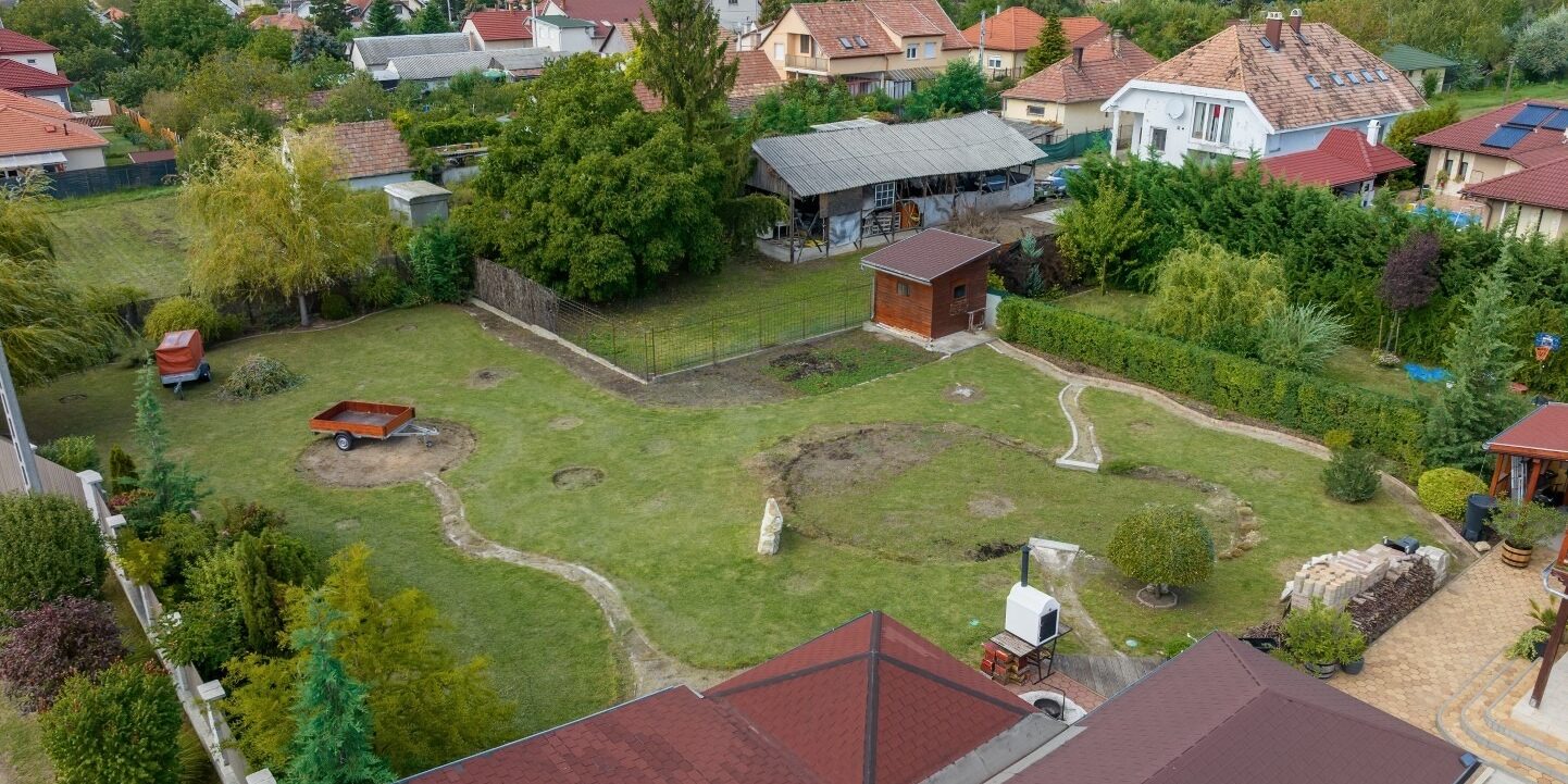 Árpád Fejedelem utca, 822 nm, körbekerített, parkosított. Az összközműves telek beépíthetősége 25 %, melyre szabadon álló, kb 200 négyzetméteres épület helyezhető el.